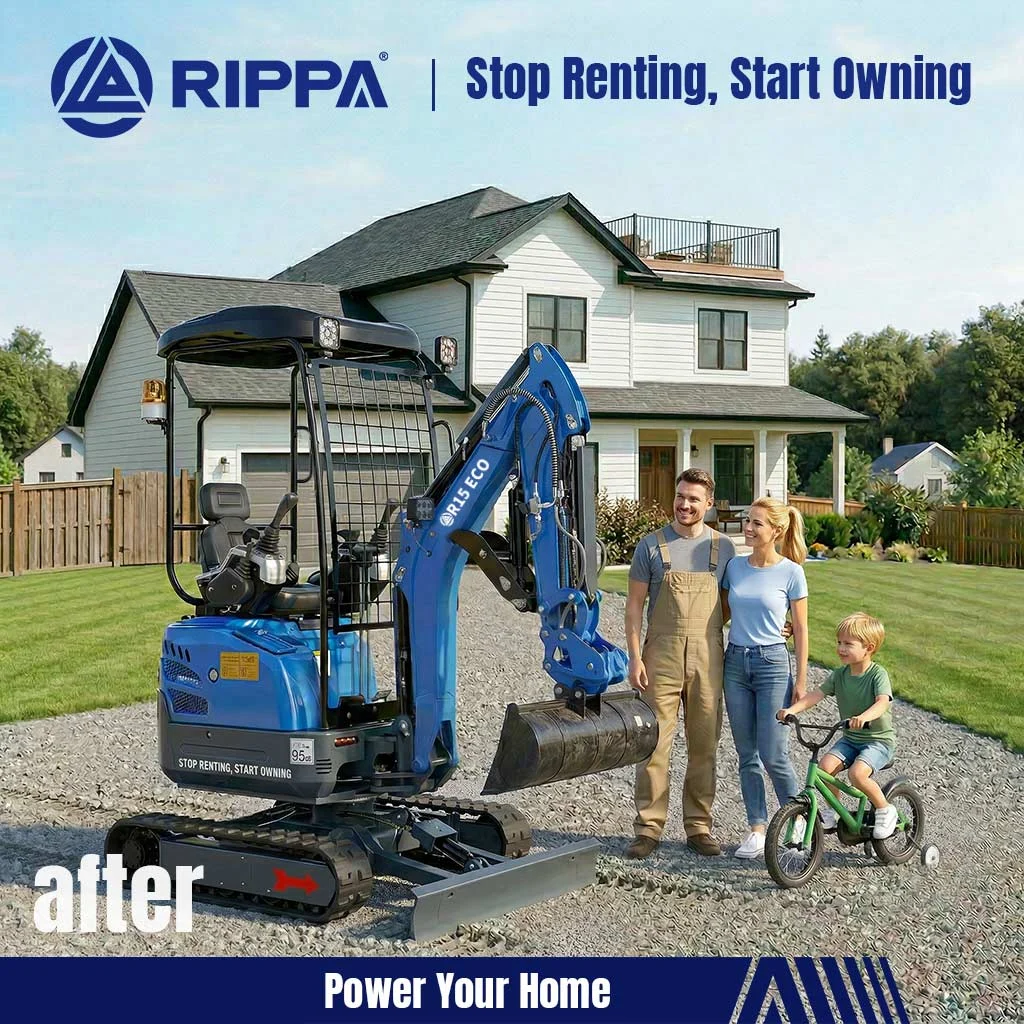 The RIPPA R15 is a 1.5-ton class mini excavator positioned in RIPPA’s lineup as the “Universal Homeowner Model.” It fills the critical gap between lightweight yard machines (under 1 ton) and heavy-duty project machines (over 1.8 tons), designed specifically for homeowners who need more power but still want compact size and ease of operation.